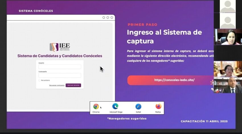 El Instituto Estatal Electoral de Baja California (IEEBC), a través de la Comisión Especial de Seguimiento a la Implementación y Operación del Sistema Conóceles, dio inicio con el ciclo de capacitaciones para las candidaturas que participarán en el Proceso Electoral Local Extraordinario 2025.