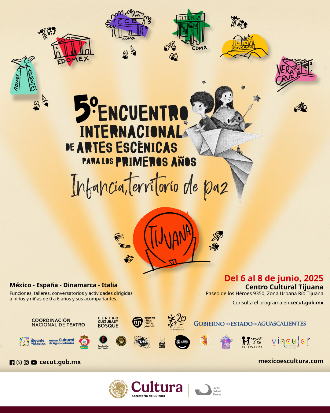 Consolidado como uno de los espacios más importantes para el teatro dirigido a la primera infancia, vuelve al Centro Cultural Tijuana (Cecut), institución de la Secretaría de Cultura del Gobierno de México, una edición más del Encuentro Internacional de Teatro para los Primeros Años: Infancia, Territorio de Paz.