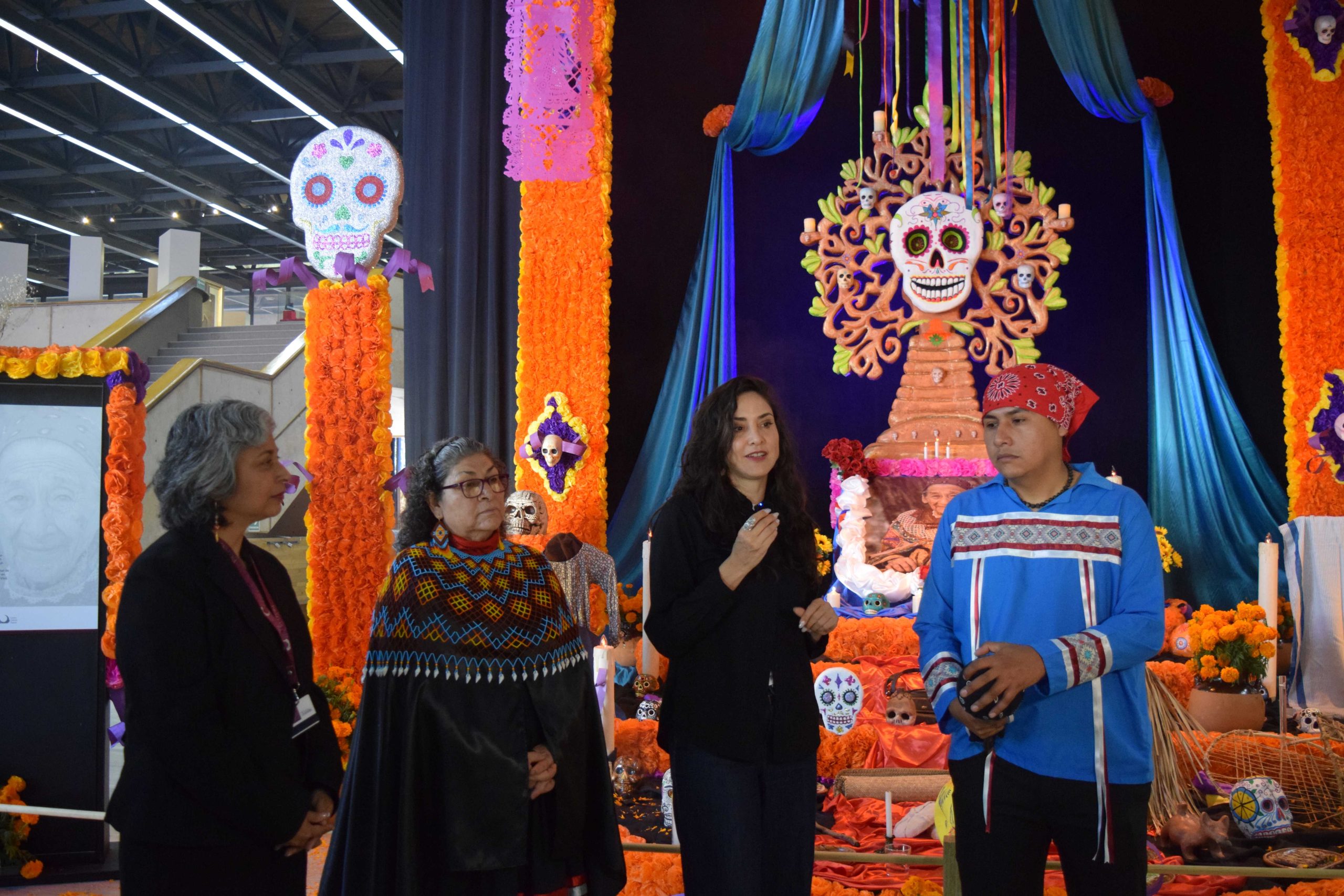 Como primera actividad, este viernes 24 de octubre en el Vestíbulo del Museo de las Californias se inauguró el monumental altar del Día de Muertos, realizado por el equipo de museografía de Cecut, dedicado a Doña Inocencia González Sainz, promotora de las tradiciones del pueblo Cucapá, acto que acompañaron su hija, Antonia Torres González, y su nieto, Jaziel Soto Torres.