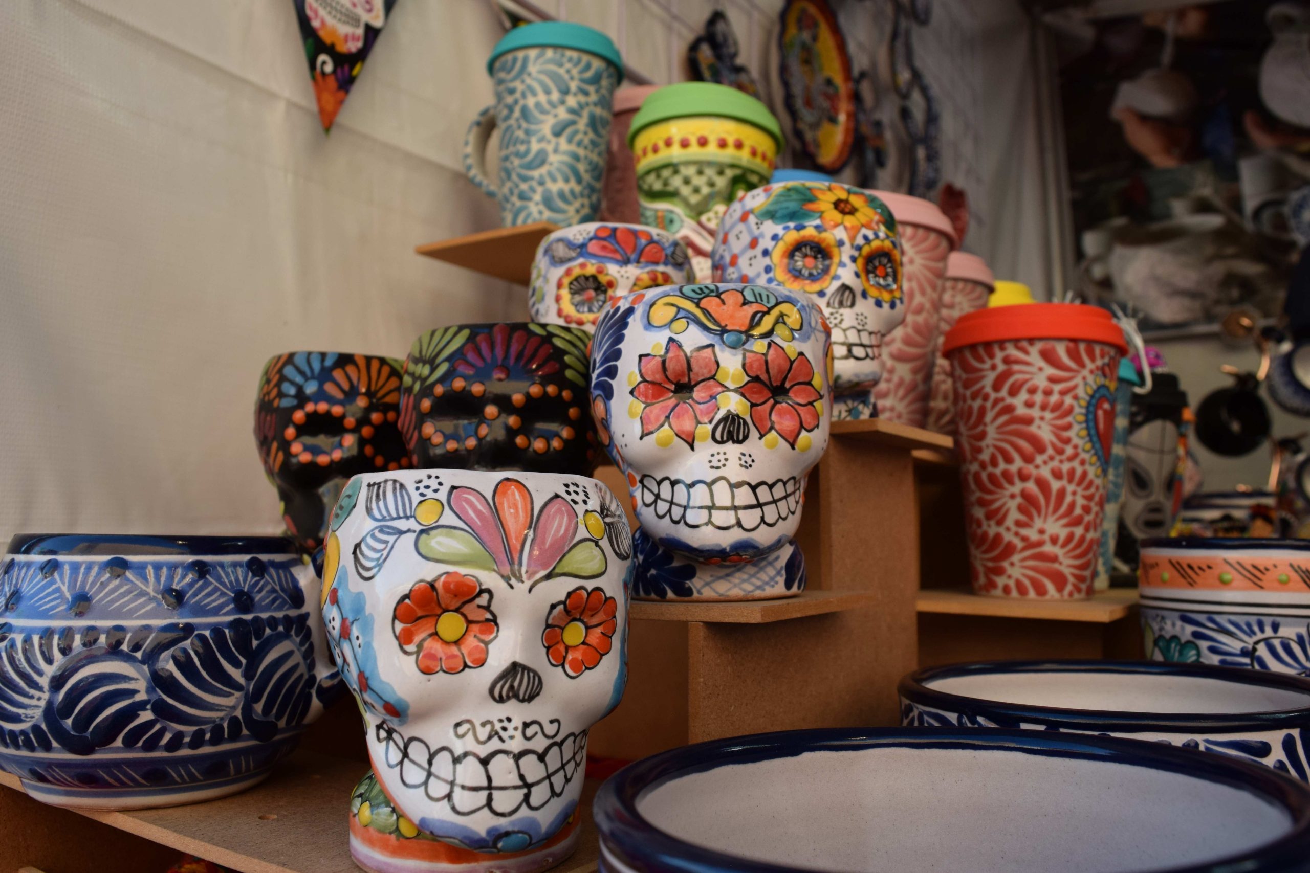 Como artesanías de Puebla, Tlaxcala, Chiapas, Guerrero, Oaxaca y Guanajuato, venta de artículos variados como textiles de lana, joyería hecha con semillas, cuarzos, macramé y de plata, accesorios, bisutería, tazas de barro, jarras con herrería, molcajetes, talavera, velas de cera de soya y coco, artículos pintados a mano, arte, postales, antigüedades, artesanías y libros coreanos para niños, flores, figuras, monederos, gorros y diademas a crochet (tejidos), bolsas, sombreros, cubrebocas pintados a mano, huaraches de piel, cestería y mucho más.