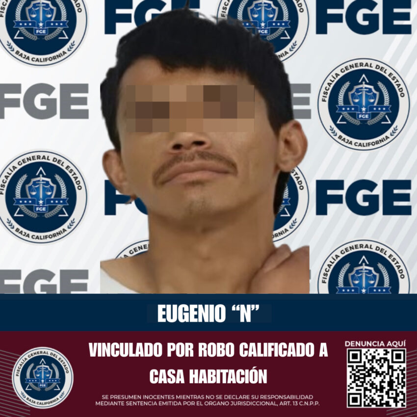 La Fiscalía Regional de Tecate obtuvo la vinculación a proceso de Eugenio “N”, acusado del delito de robo calificado a casa habitación, ocurrido el pasado 25 de abril de 2025.