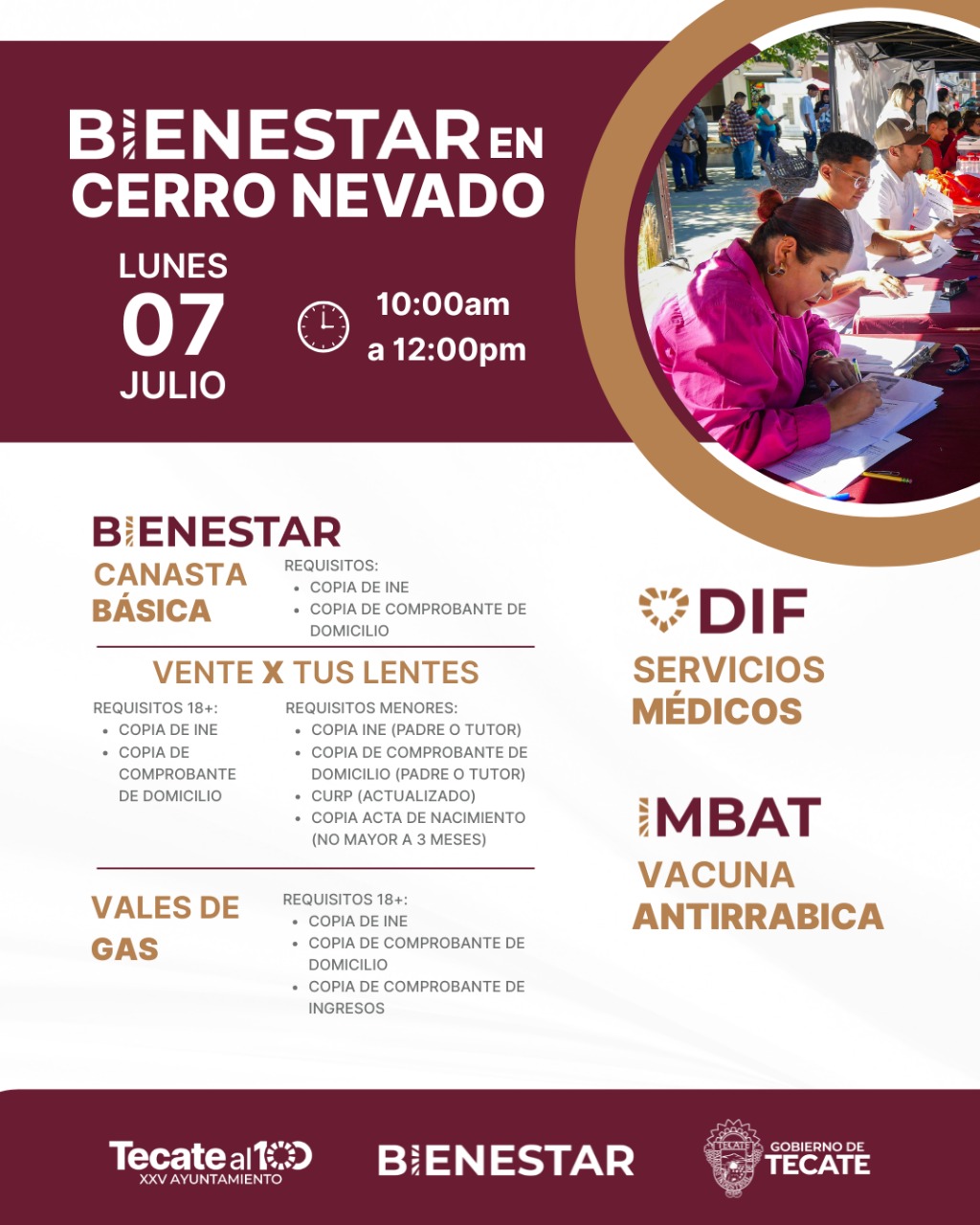 La jornada es organizada por el Gobierno de Tecate, a través de la Dirección de Bienestar, en coordinación con el Sistema DIF Municipal, el MBAT y otras dependencias, para brindar atención directa a las familias que más lo necesitan.