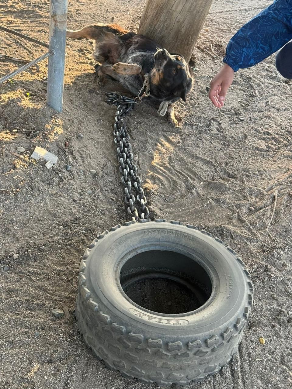 De acuerdo con la información oficial, la diligencia fue realizada el 12 de enero de 2026 por la Unidad de Tramitación Masiva de Causas. En el lugar se localizó una perra de tamaño grande, tipo mestizo —aparentemente pastor australiano—, de color negro con manchas blancas y cafés, la cual se encontraba atada con una cadena a una llanta, sin posibilidad de desplazarse. Asimismo, fue asegurado un borrego de gran tamaño, color blanco con negro, con la lana sucia y excesivamente crecida.