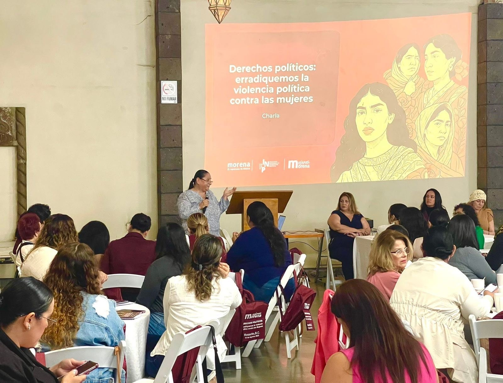 - Más de un centenar de militantes, legisladoras, alcaldesas y líderes comunitarias se dieron cita en Playas de Rosarito para participar en el taller “Derechos Políticos: Erradiquemos la violencia política contra las mujeres”, convocado por el Comité Ejecutivo Estatal de Morena en Baja California a través de la Secretaría de Mujeres.