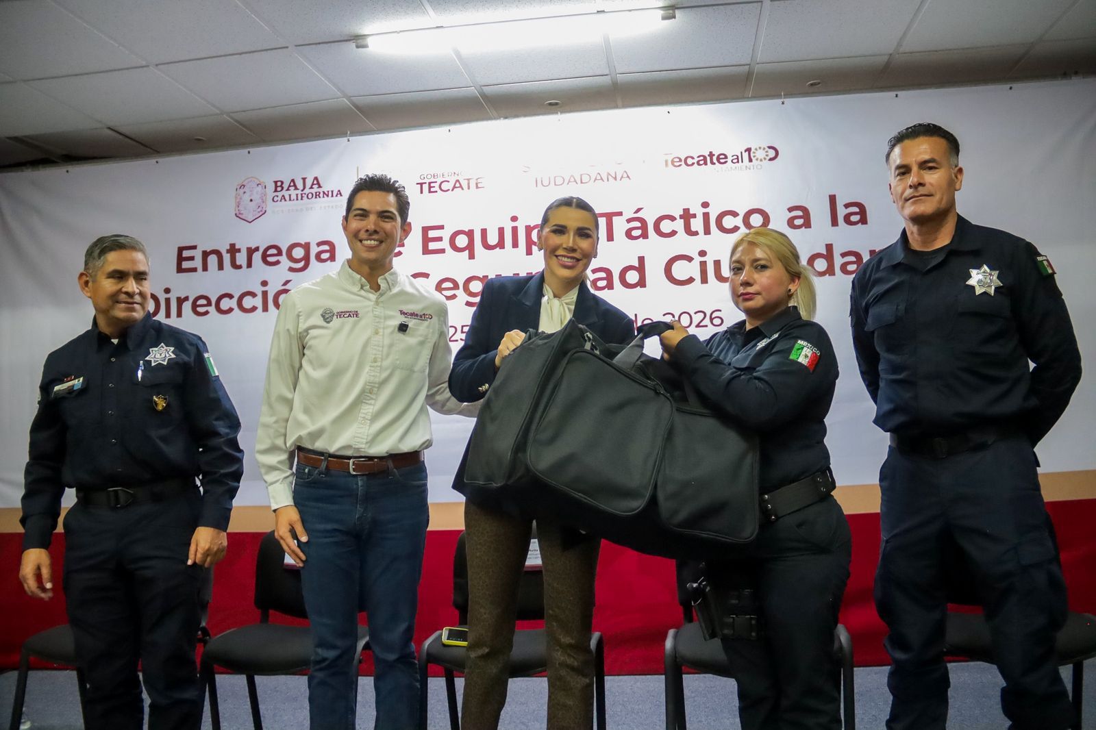La Policía Municipal de Tecate recibió equipo táctico por parte del Gobierno del Estado, encabezado por la gobernadora Marina del Pilar Ávila Olmeda, como parte de las acciones coordinadas para continuar fortaleciendo la seguridad y brindar mayores condiciones de protección a quienes diariamente resguardan la tranquilidad de las familias tecatenses.