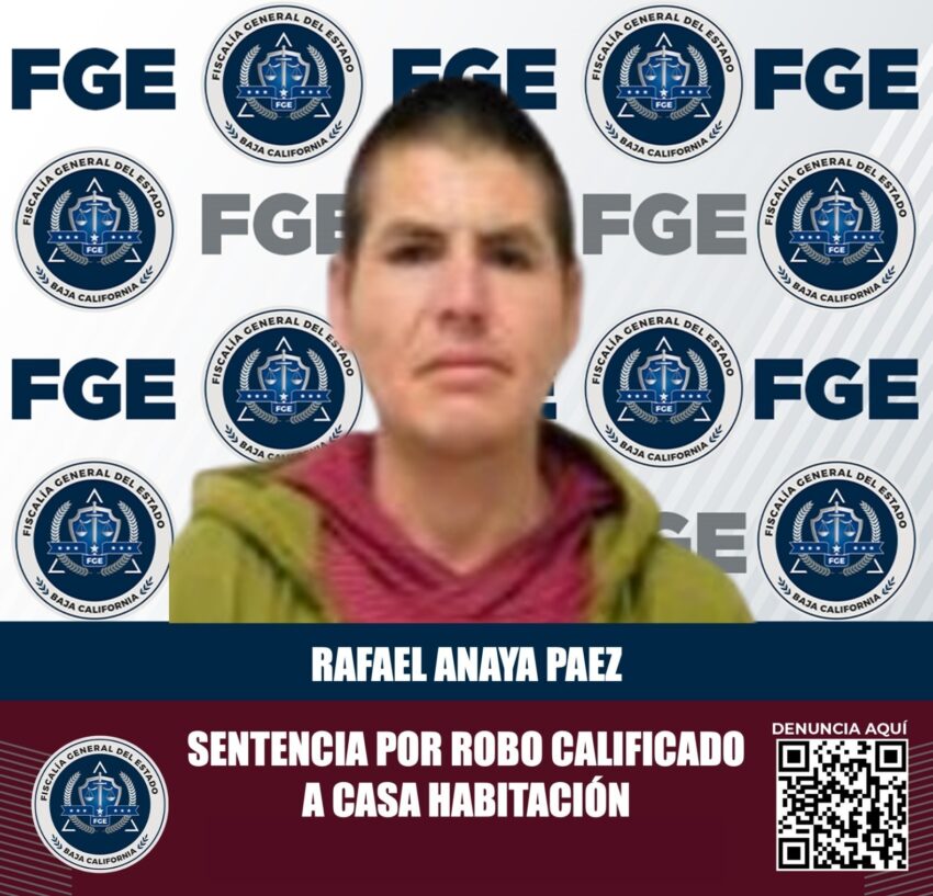 La Fiscalía Regional de Tecate acreditó la responsabilidad de Rafael Anaya Páez, un hombre acusado del delito de robo calificado a casa habitación, ocurrido en julio de 2021.