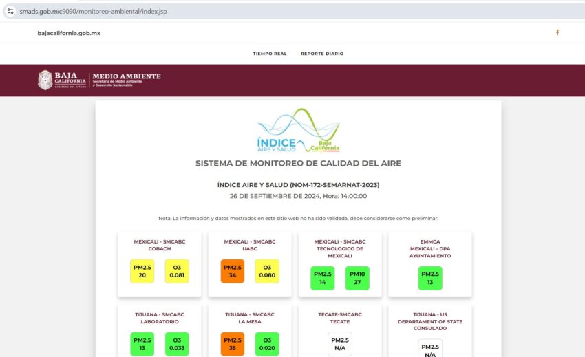A través de las redes sociales de la Secretaría, diariamente se publica el boletín del monitoreo, mientras que en el portal https://www.bajacalifornia.gob.mx/medio_ambiente/ la ciudadanía podrá consultar los datos en tiempo real concentrados en la pestaña de Calidad del Aire, así como los parámetros recabados en las últimas veinticuatro horas por las distintas estaciones registradas en esta dependencia.