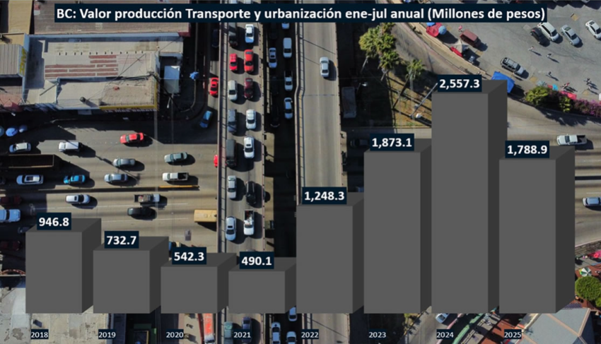 - Las obras de Transporte y urbanización en Baja California registran pérdidas del 30% a tasa anual al 31 de julio de 2025 respecto al 31 de julio de 2024, de acuerdo con los resultados que dio a conocer el Instituto Nacional de Estadística y Geografía (INEGI).