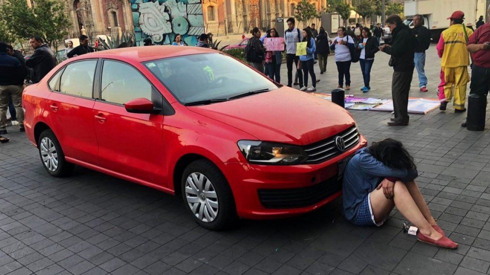Previo a la conferencia matutina de este viernes de López Obrador, la joven estacionó su carro frente a la puerta principal y sentada con la mirada al piso exigió que el presidente la recibiera.