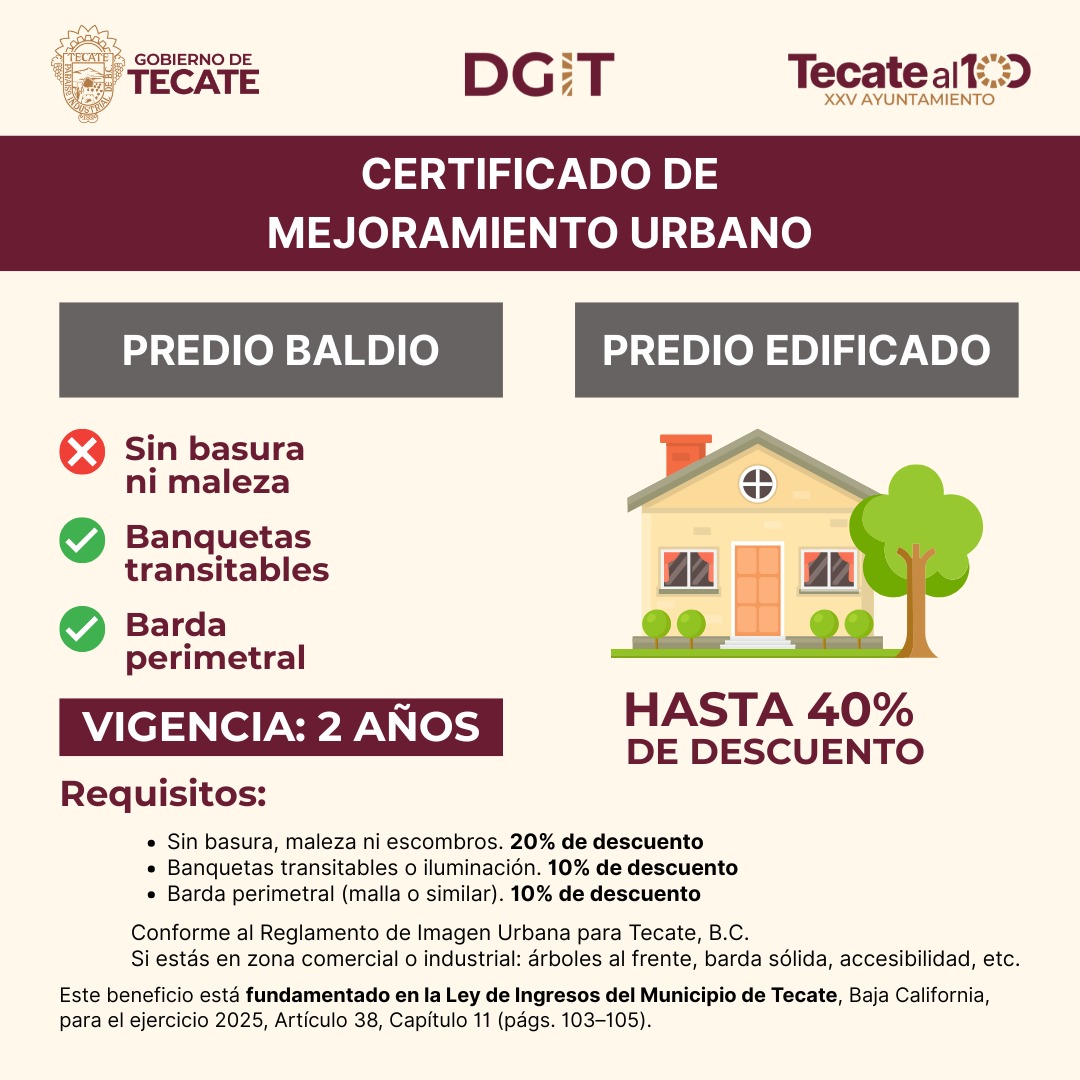 Gobierno de Tecate informa sobre el Certificado de Mejoramiento Urbano