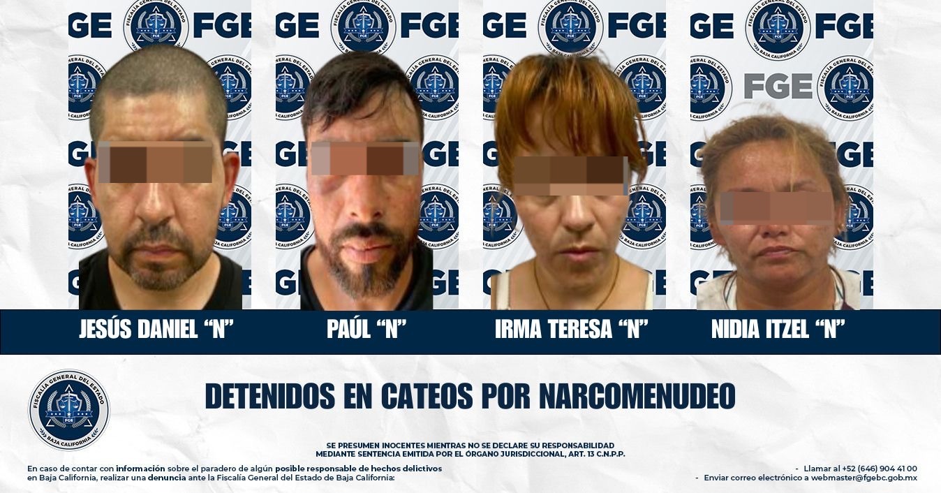 Detiene la fiscalía especializada en narcomenudeo a cuatro personas durante cateos