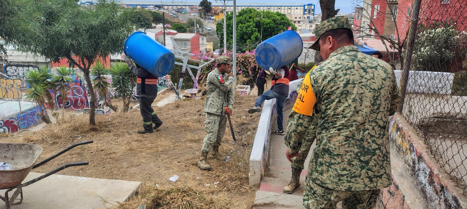 Jornada de labor social de la DEFENSA, en Parque San Antonio, Colonia Pórticos de San Antonio, Tijuana BC.