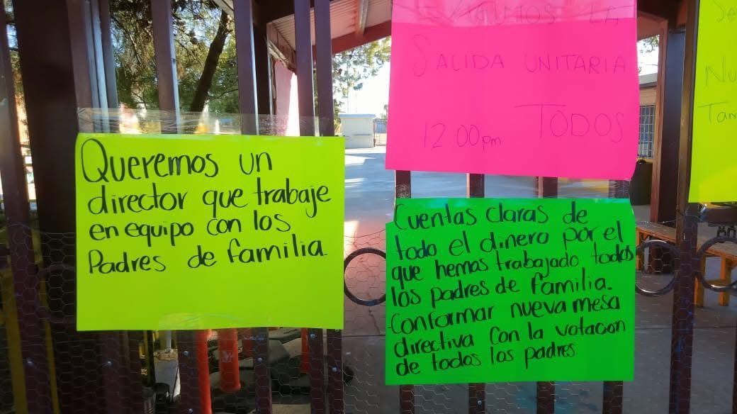 Padres de familia se manifiestan en primaria de La Rumorosa; exigen diálogo y respeto