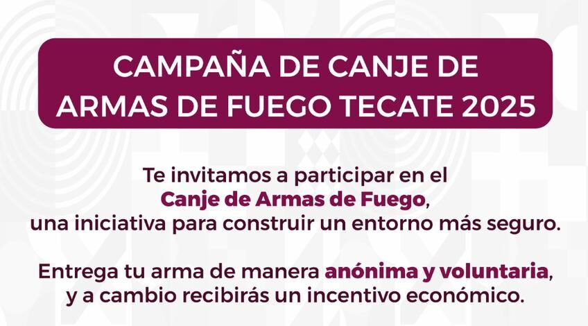 Gobierno de Tecate invita a participar en la Campaña de Canje de Armas de Fuego 2025