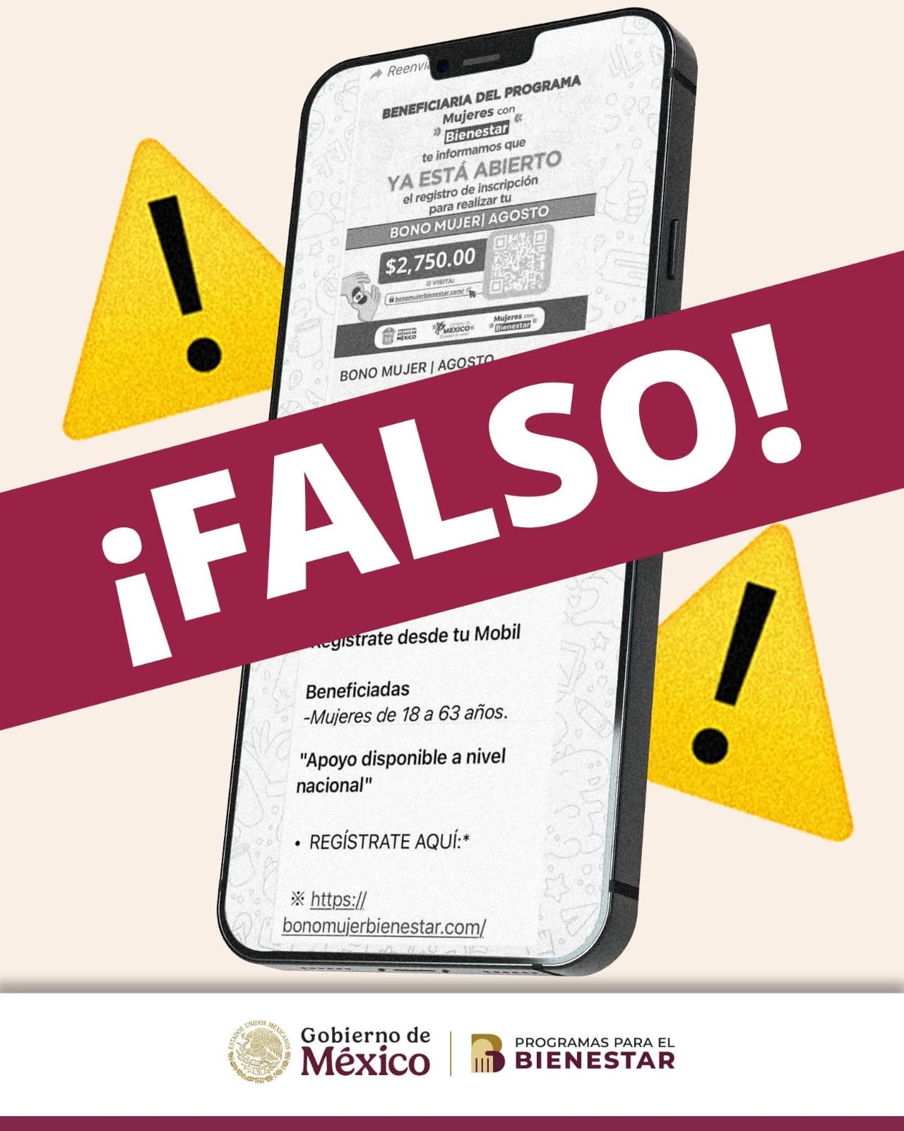 ¡¡ALERTA!! Falso que el Gobierno de Mexico entregue un bono económico a mujeres 18 a 63 años