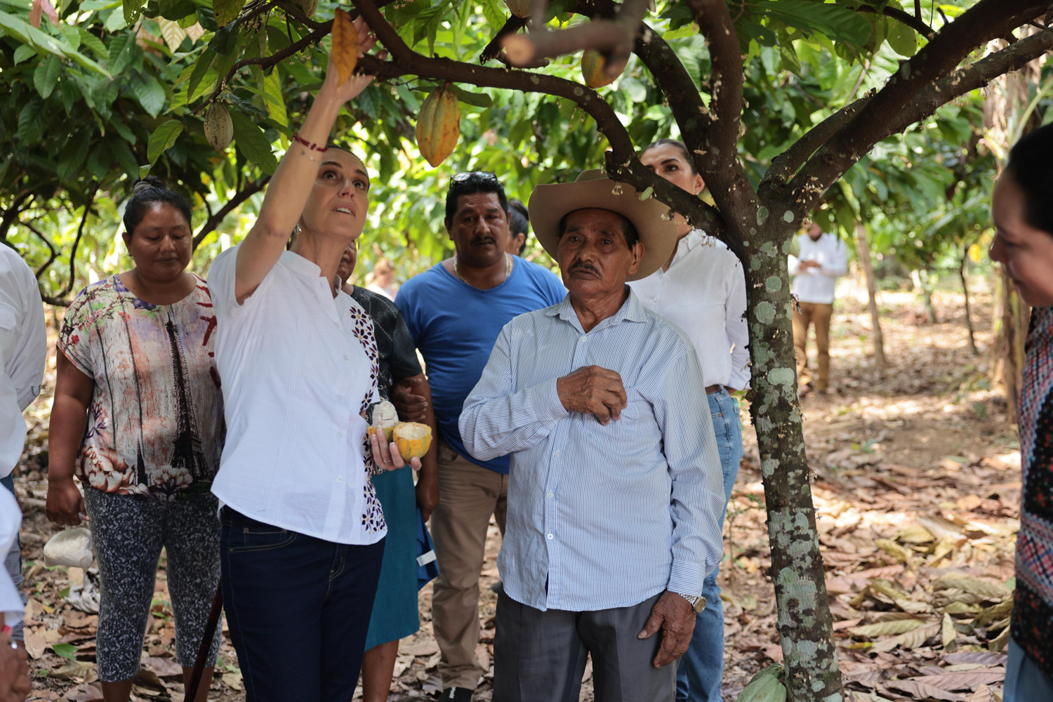 «Chocolate del Bienestar»: Sheinbaum visita vivero de cacao en Tabasco y refrenda apoyo a sembradores
