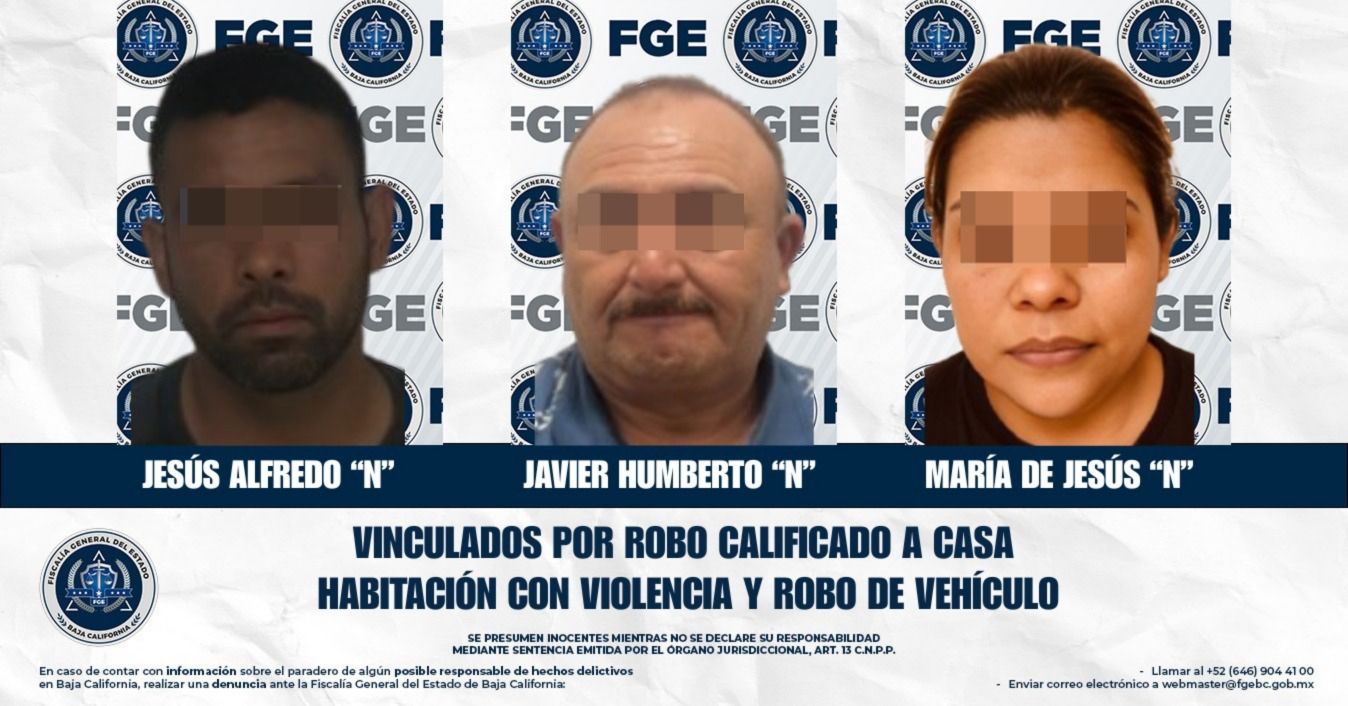 Una mujer y dos hombre en prisión por robar 213 mil dólares, 100 mil pesos y un vehículo ejecutado con violencia a personas adultas mayores