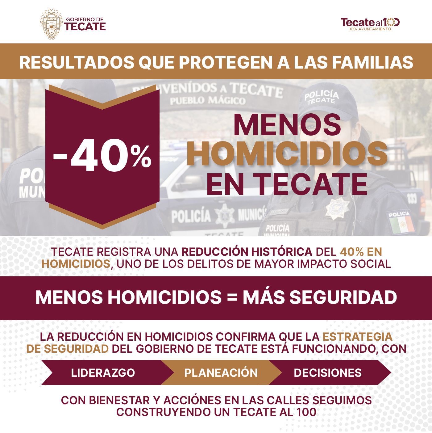 Tecate registra histórica reducción en homicidios y delitos de alto impacto