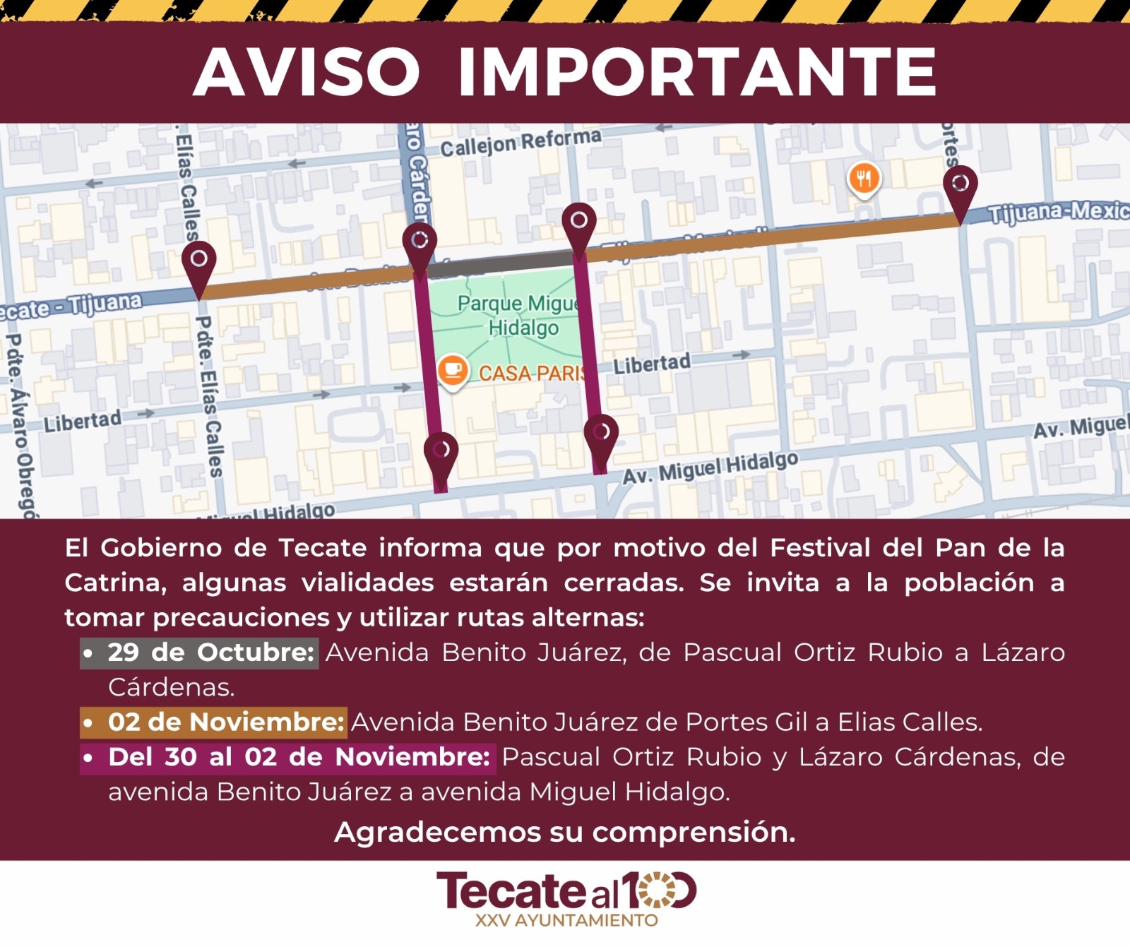 El Gobierno de Tecate informa a toda la ciudadanía que, con motivo del Festival “El…