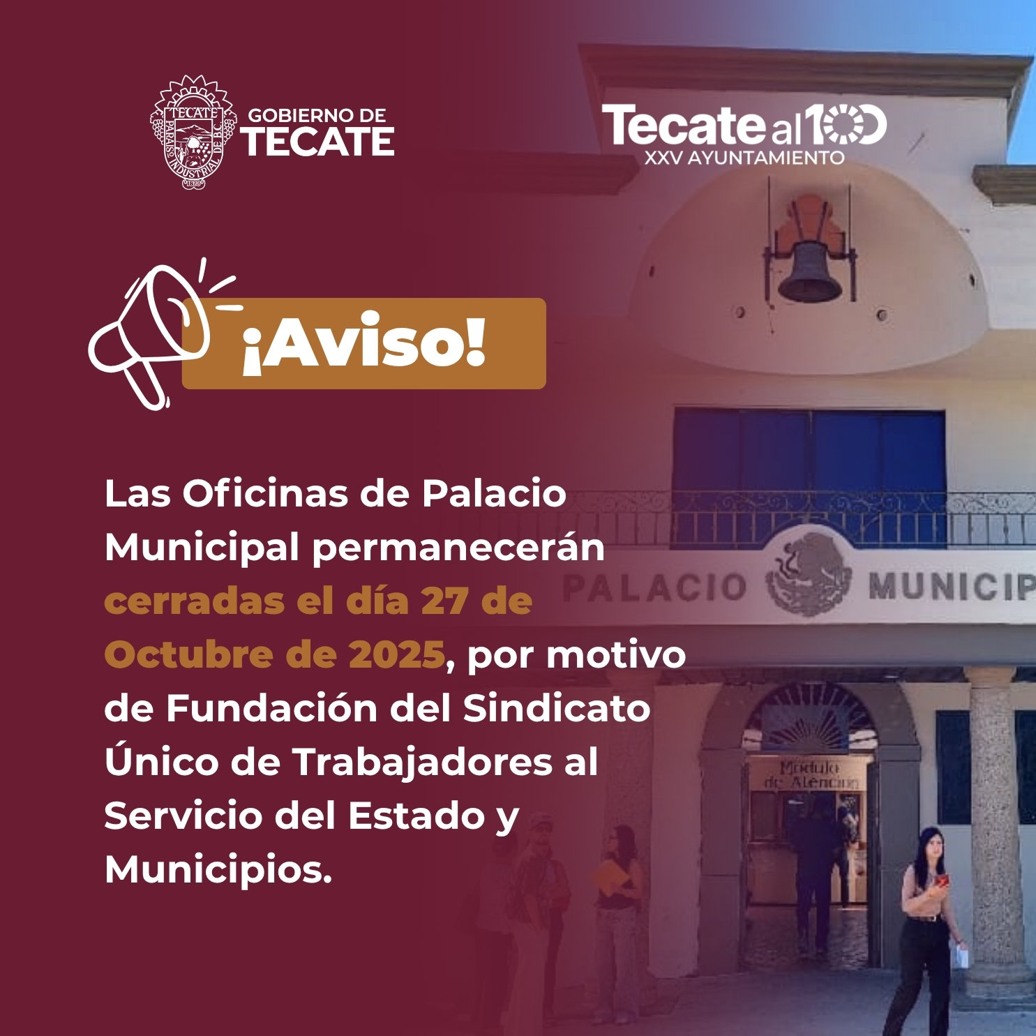 El Gobierno de Tecate informa a la ciudadanía que el próximo lunes 27 de octubre…