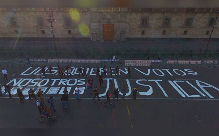 En el suelo escribieron la consigna “Ustedes quieren votos, nosotros queremos justicia”. Asimismo colocaron carteles con los rostros de los periodistas que han sido asesinado y desaparecidos.