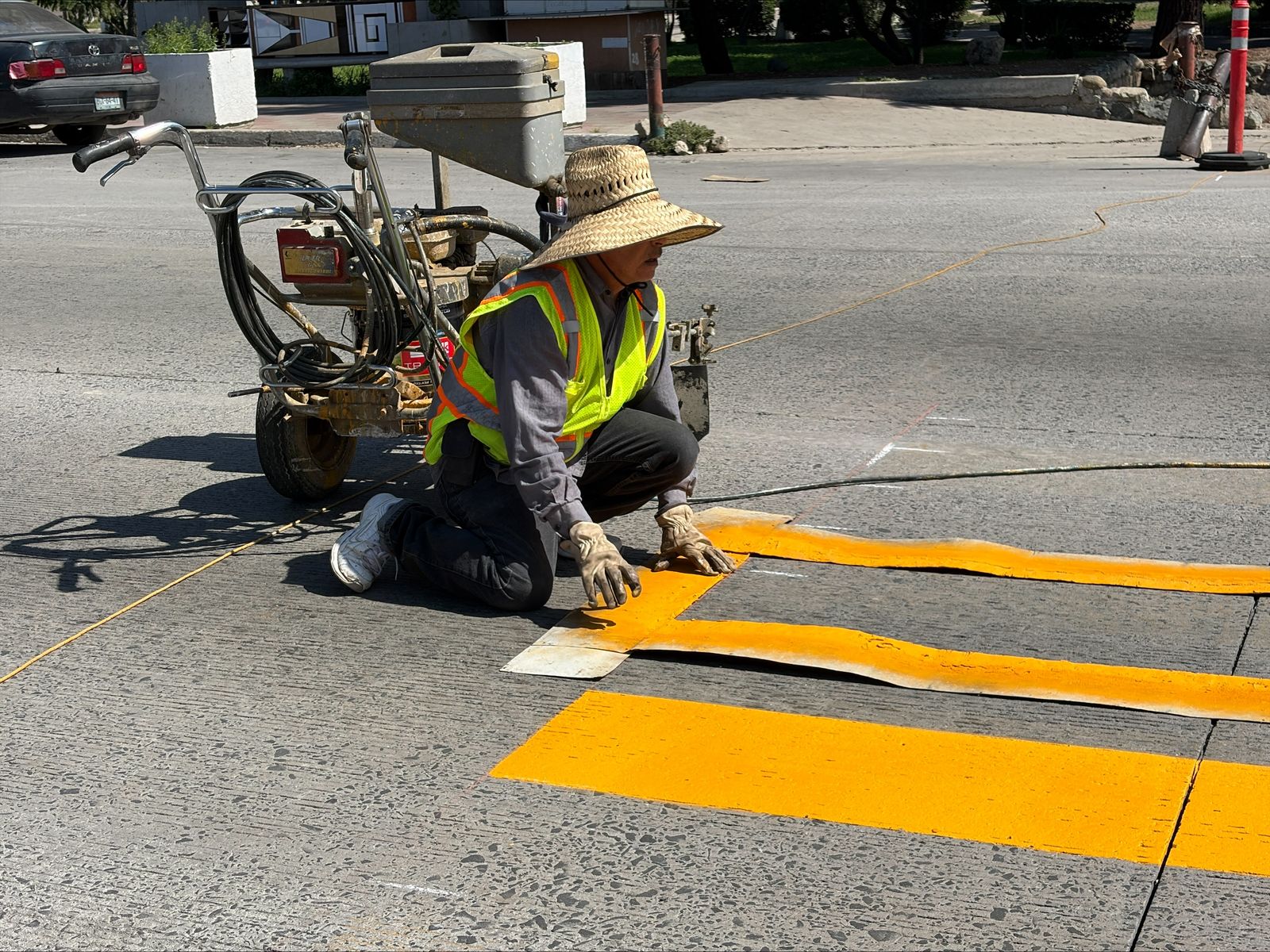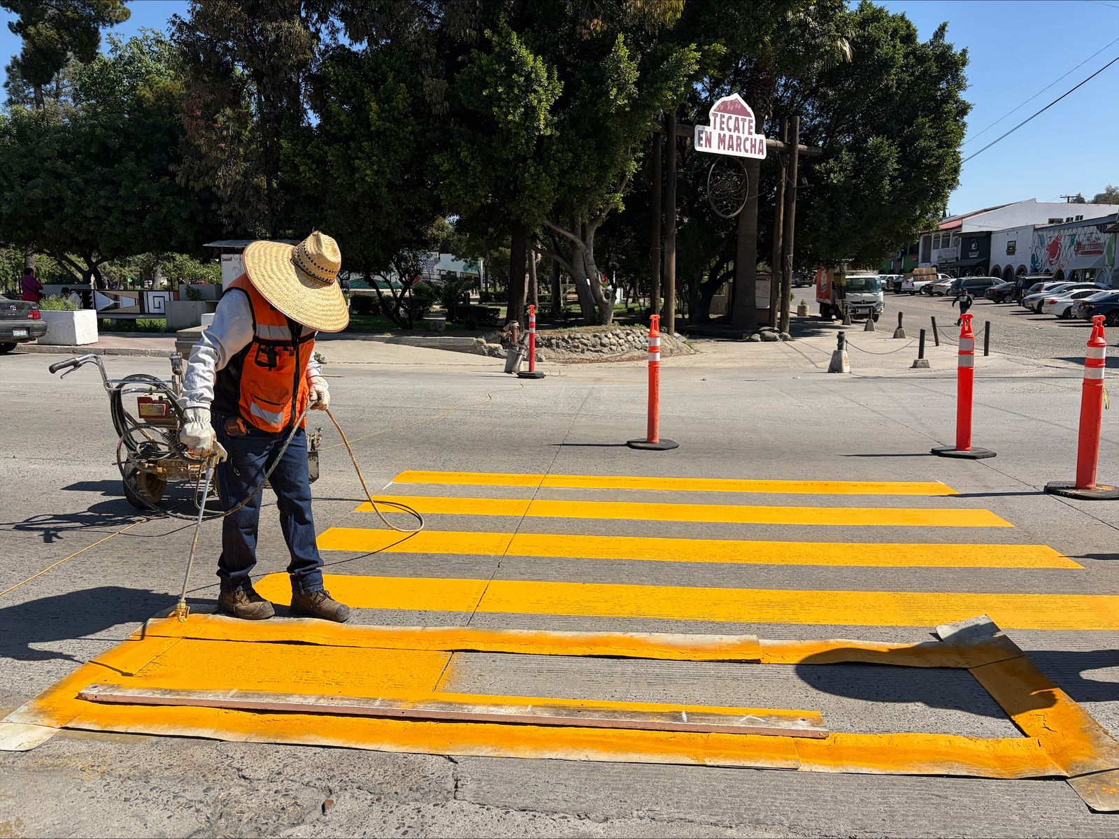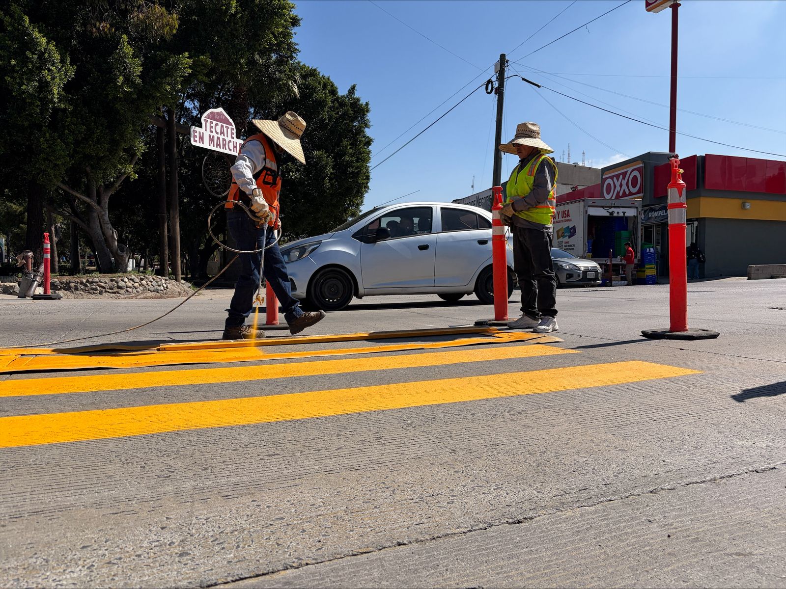 Con el objetivo de mejorar la seguridad vial y brindar mayor protección a peatones, el Gobierno de Tecate, a través de la Dirección de Bienestar Municipal y en coordinación con el Instituto de Promoción del Desarrollo Urbano (INPRODEUR), llevó a cabo trabajos de pintado de cruces peatonales con pintura especial para tráfico en el bulevar Universidad.