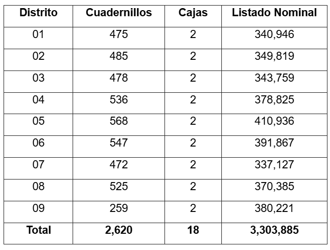 Cabe puntualizar que, se recibieron 2,620 de cuadernillos distribuidos en los nueve Distritos Electorales: