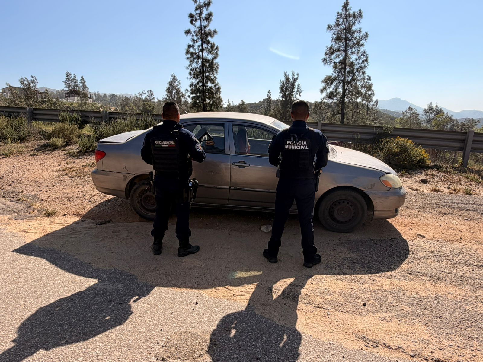 La intervención se registró sobre la carretera Tecate–El Sauzal, a la altura de Rancho Santa Fe, donde elementos del Departamento de Operaciones Caninas (K9), en atención a un reporte emitido por la central de radio, se trasladaron al lugar tras la localización de un vehículo tipo sedán, marca Toyota Corolla, color gris.