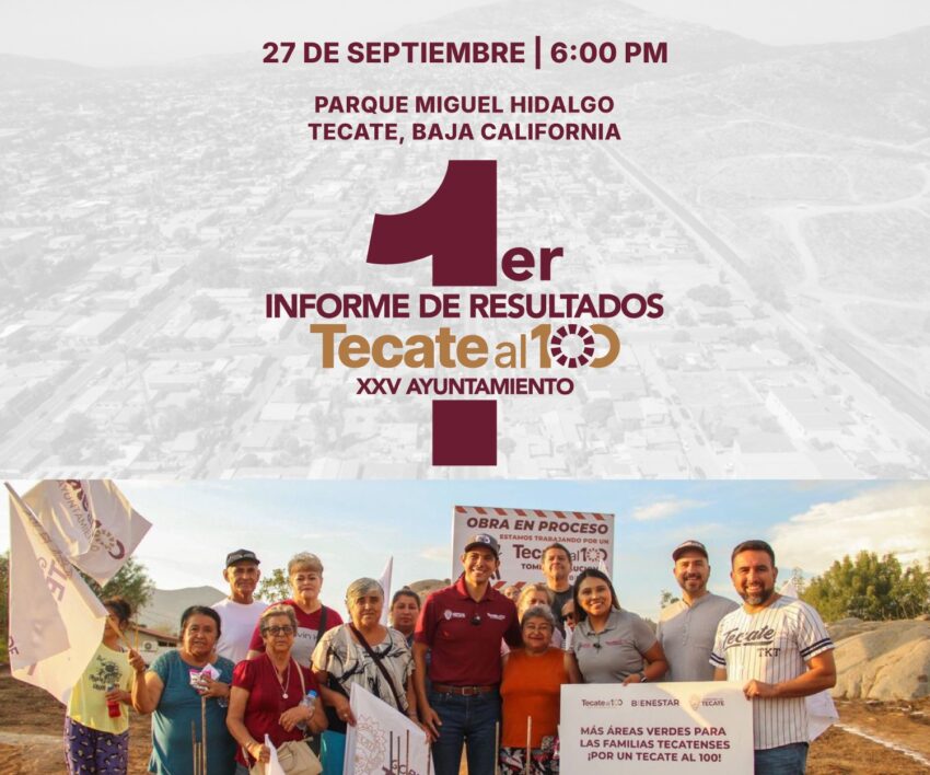 La ciudadanía está invitada a ser parte de este evento de rendición de cuentas, en el que juntos se seguirá escribiendo la historia de un Tecate más justo, limpio y próspero para todas y todos.