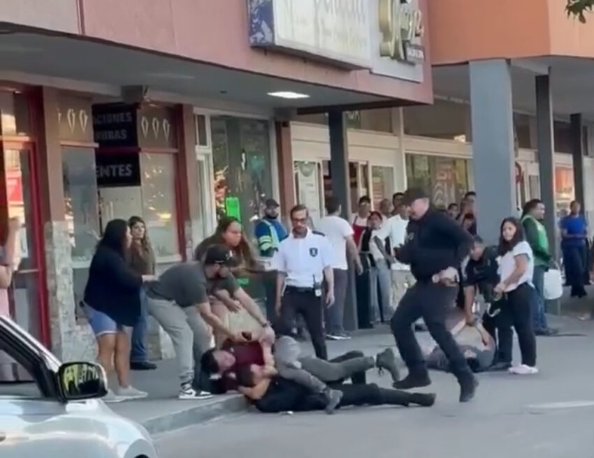 Los hechos ocurrieron en plena vía pública, dentro del área comercial de Plaza Encinos, donde los sujetos, visiblemente alterados, protagonizaron una pelea que generó alarma entre los presentes.