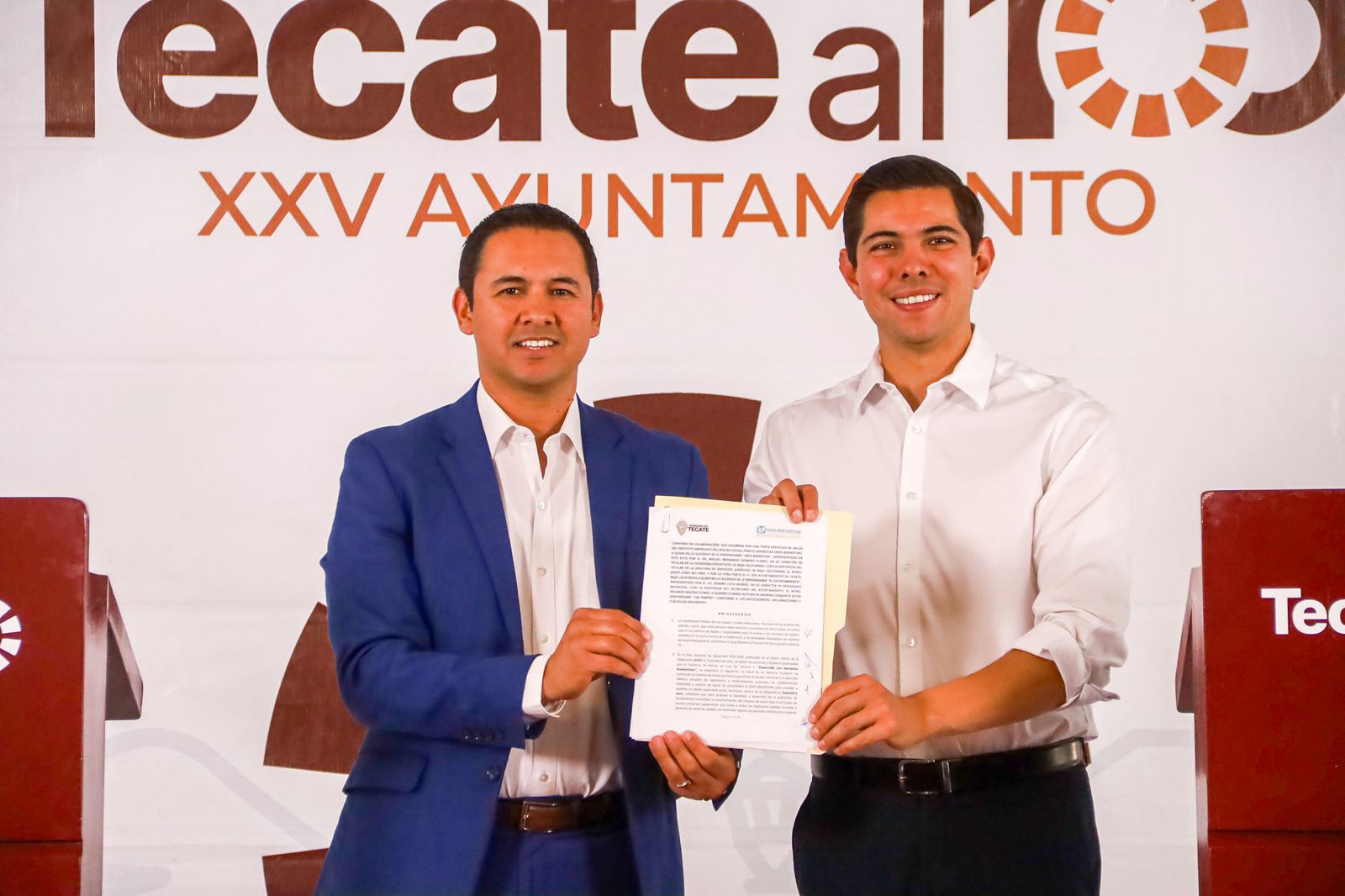 La firma del convenio se llevó a cabo durante la conferencia informativa semanal del Gobierno de Tecate y se contó con la participación del Dr. Miguel Bernardo Romero Flores, titular de la Coordinación Estatal de IMSS-Bienestar en Baja California.