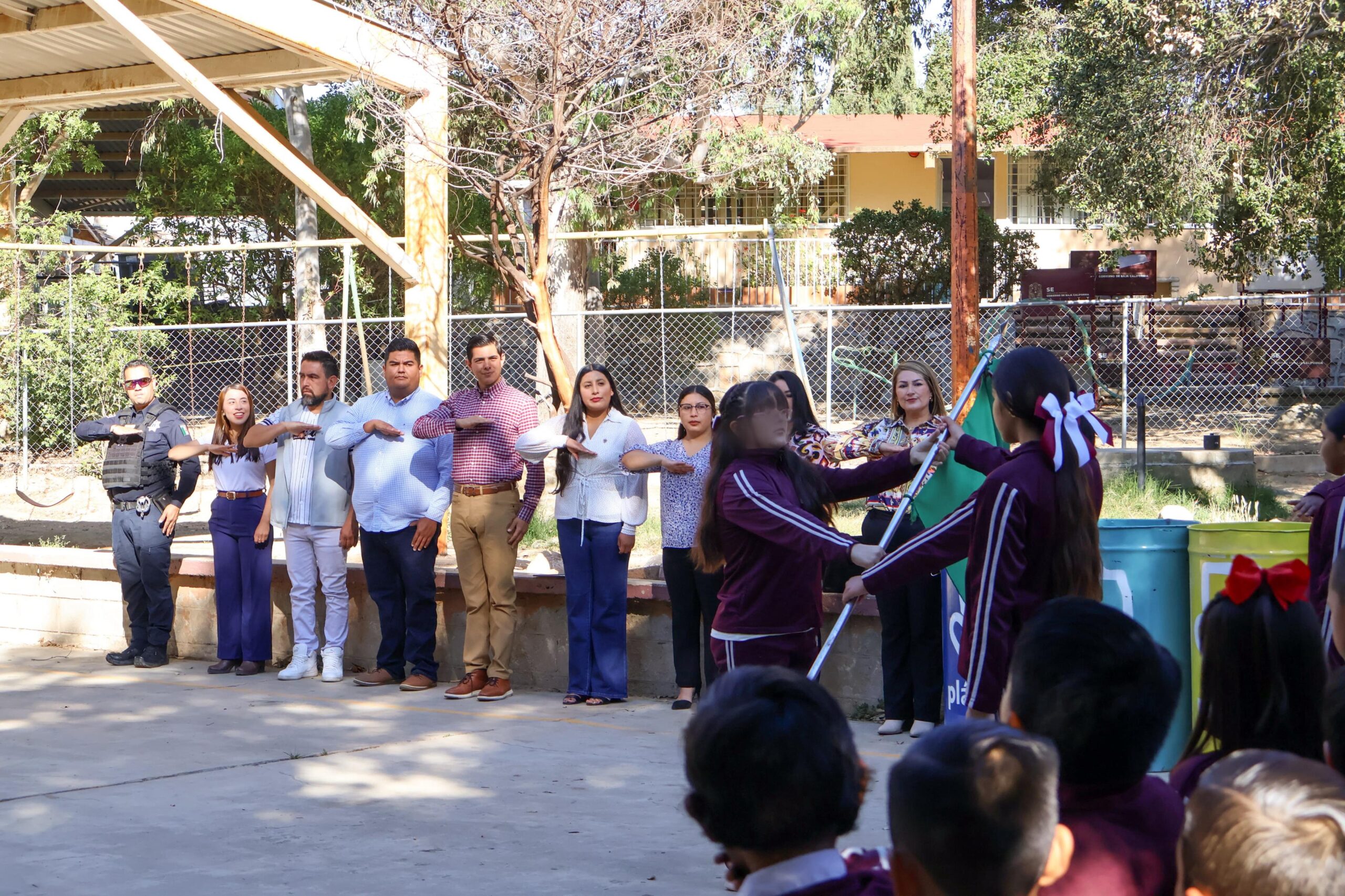 Además del acto cívico y la ceremonia de honores a la bandera, el alcalde hizo entrega de material deportivo a la escuela, además de rifar una tableta electrónica como parte del compromiso con el fortalecimiento educativo y digital en los planteles educativos de Tecate.