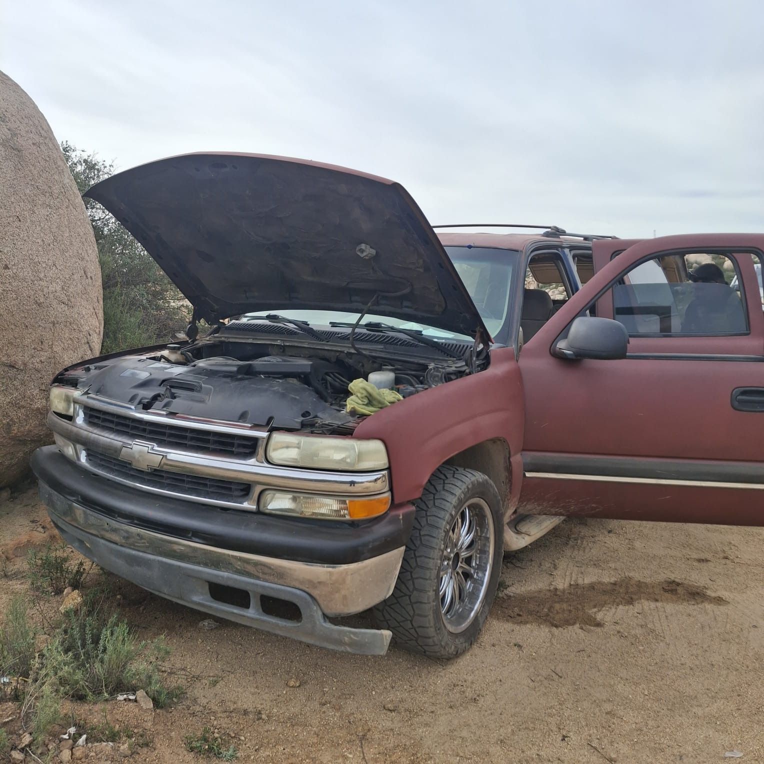 En el lugar fue localizada una camioneta Chevrolet Suburban, color rojo, la cual, tras la verificación de sus datos en la central de radio, arrojó contar con reporte de robo vigente con fecha del 12 de enero de 2026 en el municipio de Tecate.