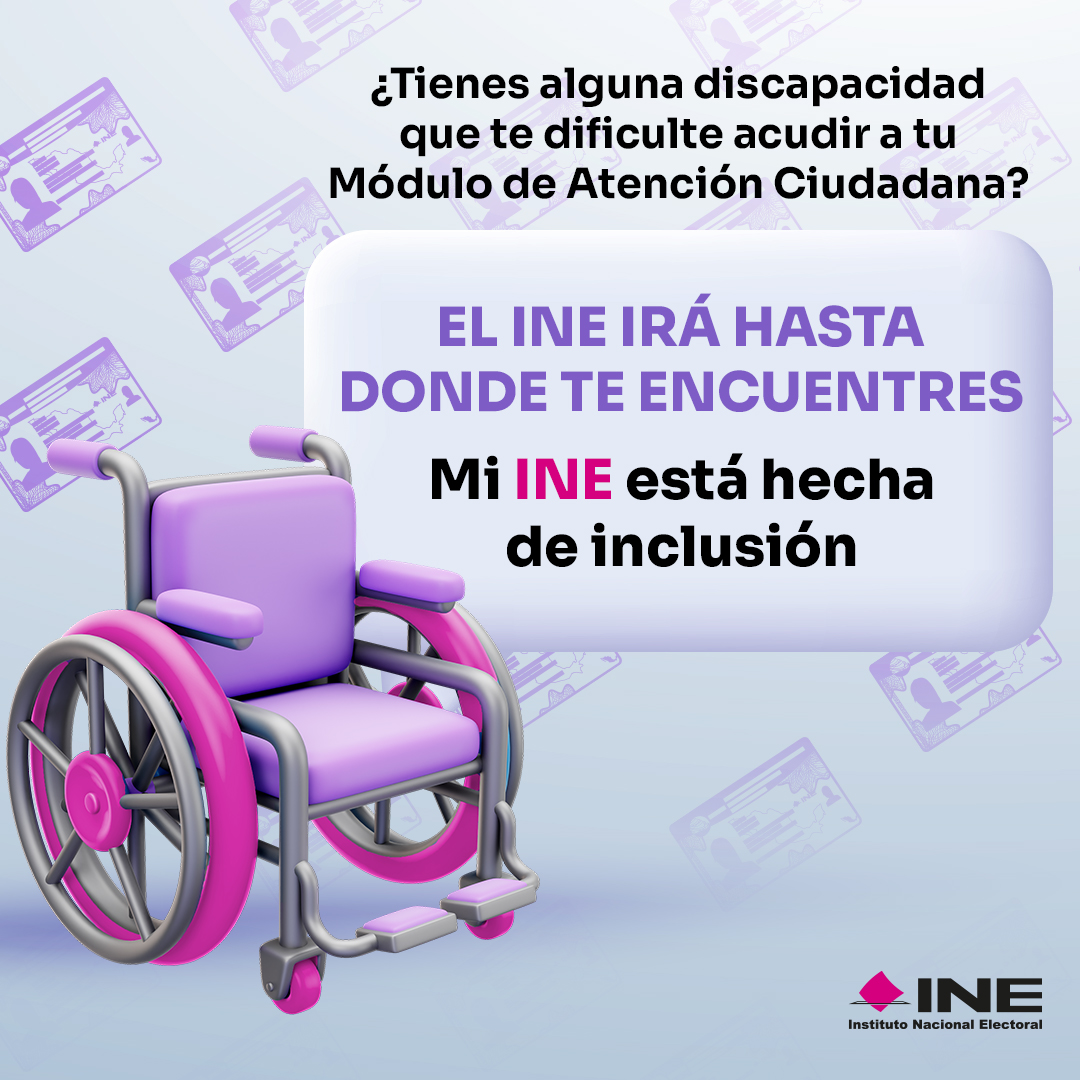 El Instituto Nacional Electoral en Baja California (INE BC) informa a la ciudadanía que las personas que presentan alguna condición o discapacidad física que les impida acudir a un Módulo de Atención Ciudadana del INE, pueden realizar el trámite de su Credencial para Votar desde el lugar donde se encuentren.