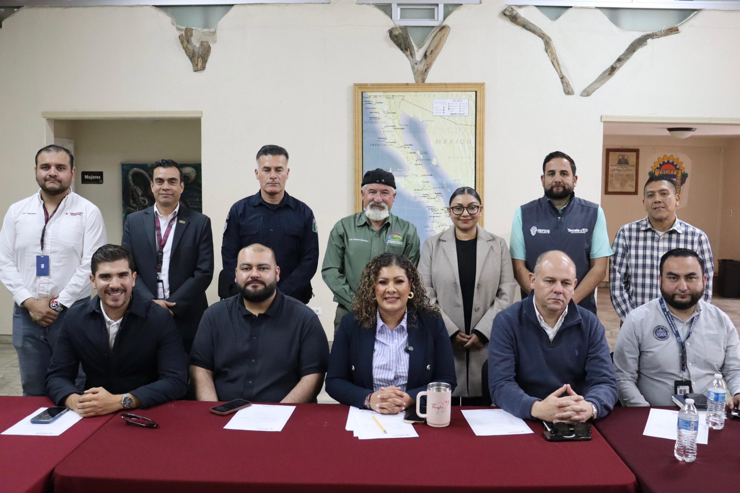 El encuentro reunió a diversas instancias de gobierno y representantes de organismos ciudadanos, entre ellos el fiscal regional Genaro Adrián Guzmán García; el regidor Isaac Contreras López; el secretario del Ayuntamiento Eduardo Macías; el oficial mayor Omar Blancarte; el director de Seguridad Ciudadana José Luis Sarmiento; el presidente del Comité Ciudadano de Seguridad Pública de Tecate Juan Aldrete; y la coordinadora de la Comisión Estatal de los Derechos Humanos de Baja California, Mayra Pacheco.