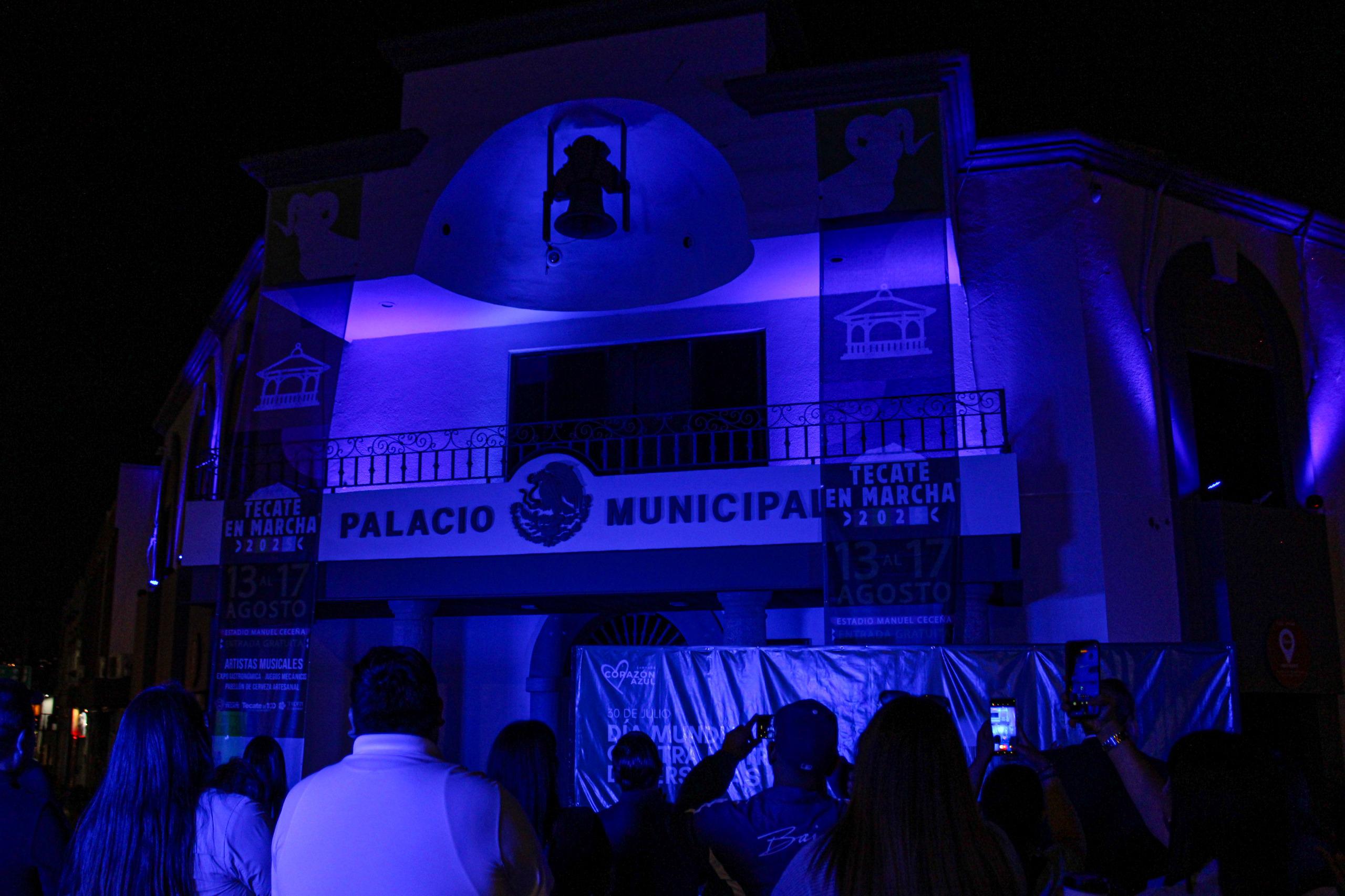 • Como parte de la conmemoración del Día Mundial contra la Trata de Personas, la noche de este lunes el Palacio Municipal de Tecate fue iluminado de color azul, en un acto simbólico que representa la esperanza, la solidaridad y el compromiso del Gobierno Municipal en la lucha contra este delito que vulnera los derechos humanos de miles de personas alrededor del mundo.