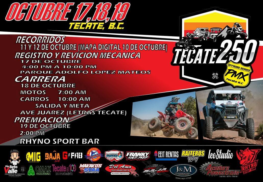 El banderazo oficial de salida será el sábado 18 de octubre, iniciando a las 7:00 de la mañana con las motocicletas, y a las 10:00 de la mañana con los vehículos, partiendo desde la Avenida Juárez (letras de Tecate), punto que también marcará la meta de la competencia.