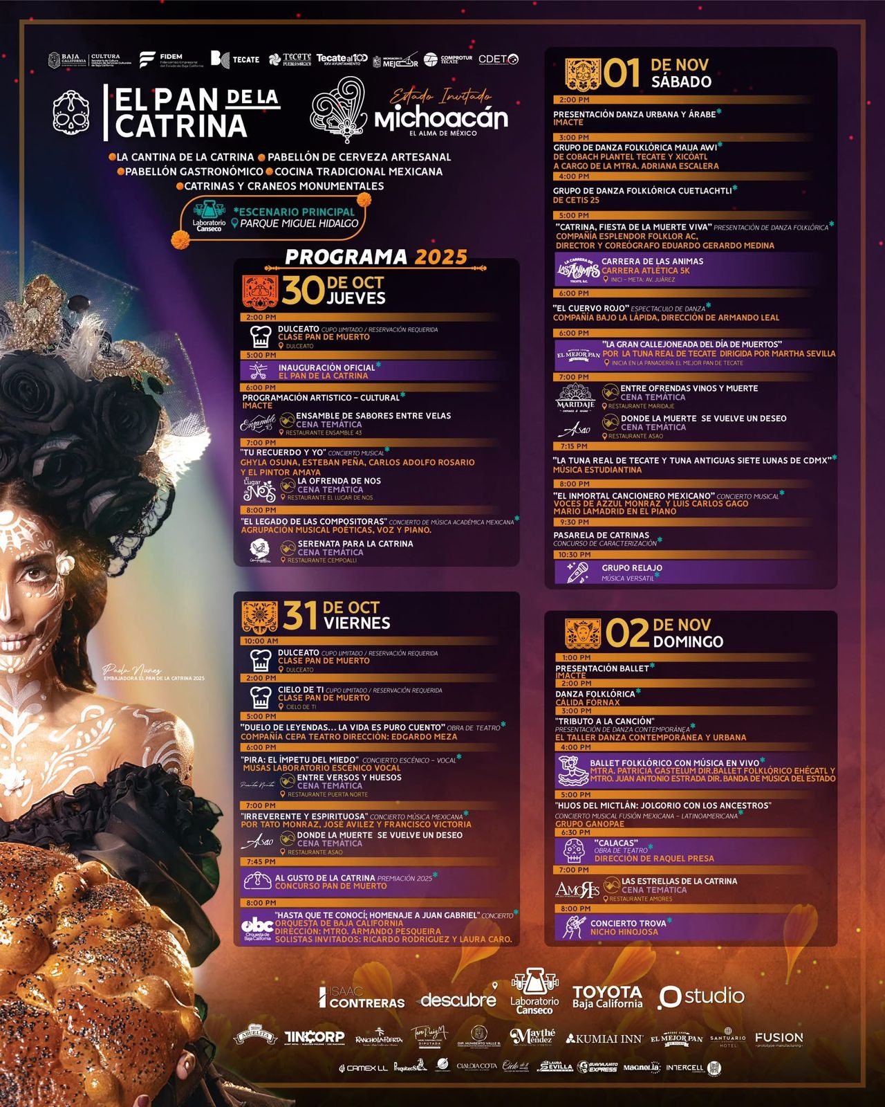 La magia, los aromas y los colores del Día de Muertos volverán a tomar las calles de Tecate en una celebración que crece, se fortalece y conquiste nuevas fronteras culturales: el Festival “El Pan de la Catrina 2025”, que este año contará con Michoacán como invitado de honor, uno de los estados donde esta tradición mexicana alcanza su máxima expresión y reconocimiento en el mundo.