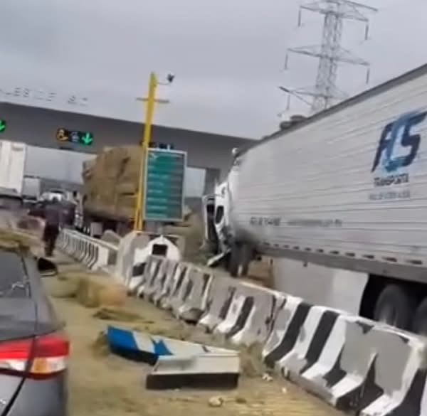 Tráiler impacta varios vehículos en la caseta de El Hongo
