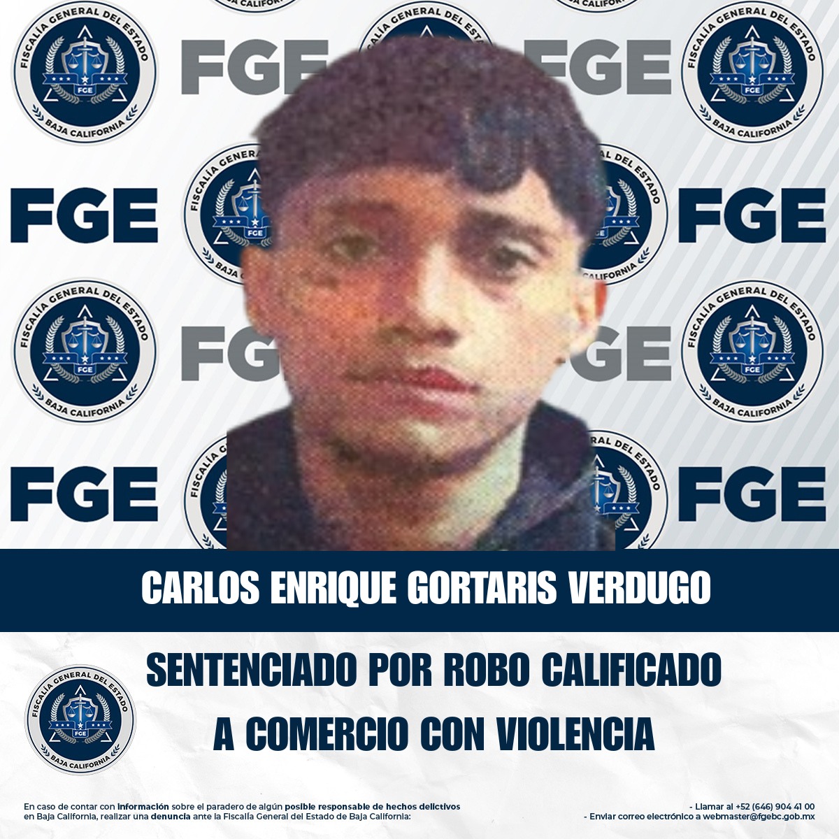 La Fiscalía Regional de Tijuana, a través del trabajo realizado por la Unidad de Investigación de Robos Zona Centro, logró obtener una sentencia condenatoria en contra de Carlos Enrique Gortaris Verdugo, por el delito de robo calificado a establecimiento comercial abierto al público, ejecutado con violencia.