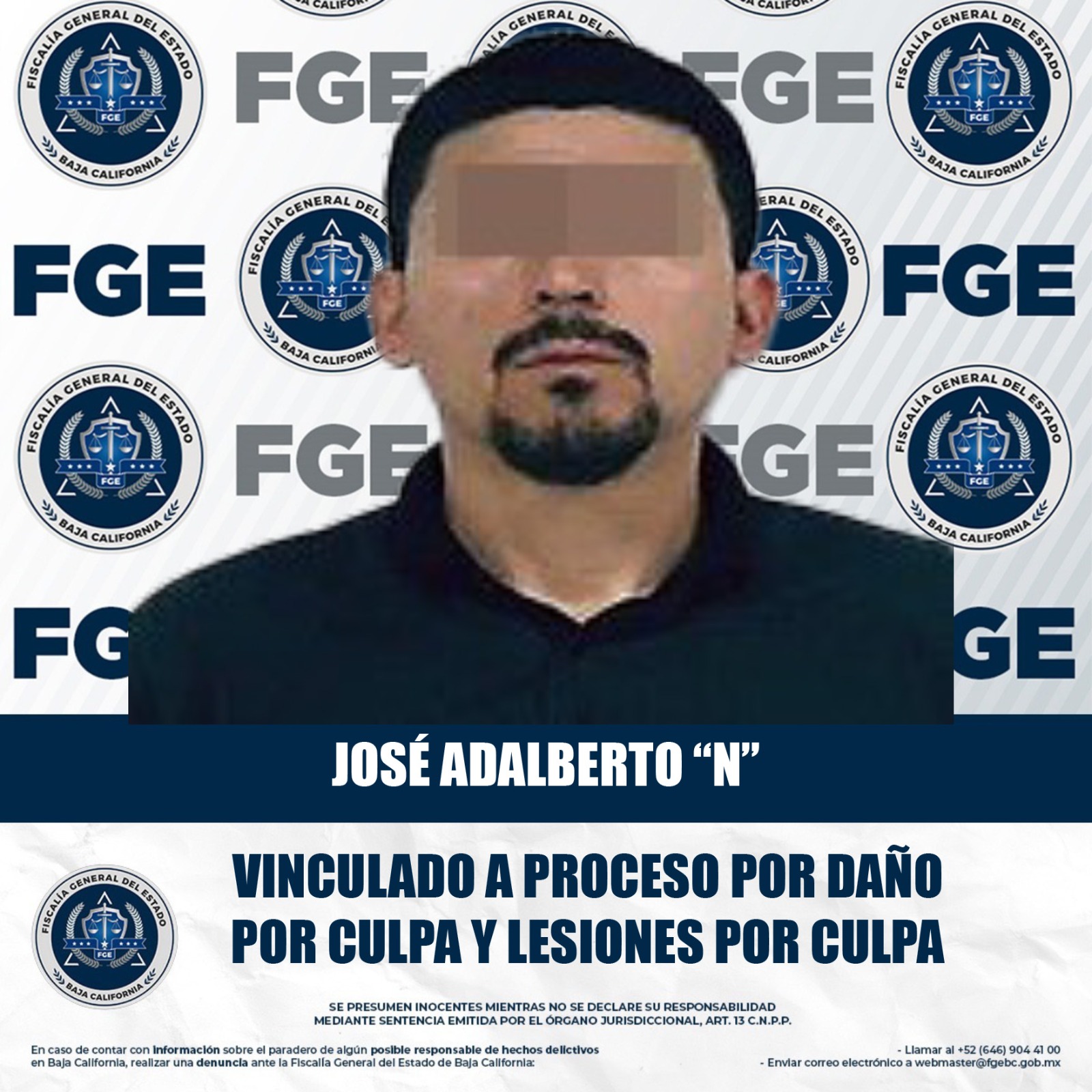 La Fiscalía Regional de Tecate, a través de la Unidad de Investigación de Delitos con Detenidos, obtuvo la vinculación a proceso de José Adalberto “N”, por su presunta responsabilidad en el delito de daños y lesiones por culpa.