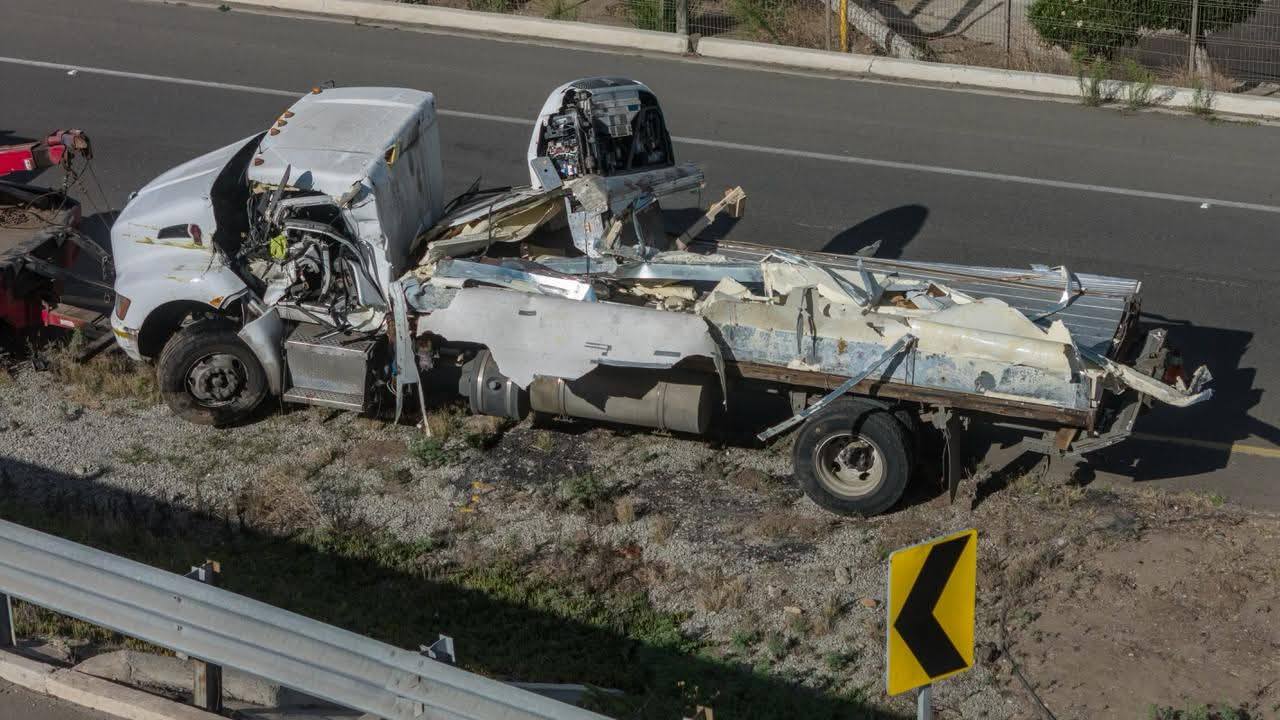 El accidente ocurrió poco antes de las 7:00 horas, cuando la unidad de carga intentaba incorporarse a la carretera de cuota. De acuerdo con los primeros reportes, el exceso de peso habría desestabilizado el vehículo al tomar una curva, provocando que la pesada unidad quedara volcada sobre el asfalto.